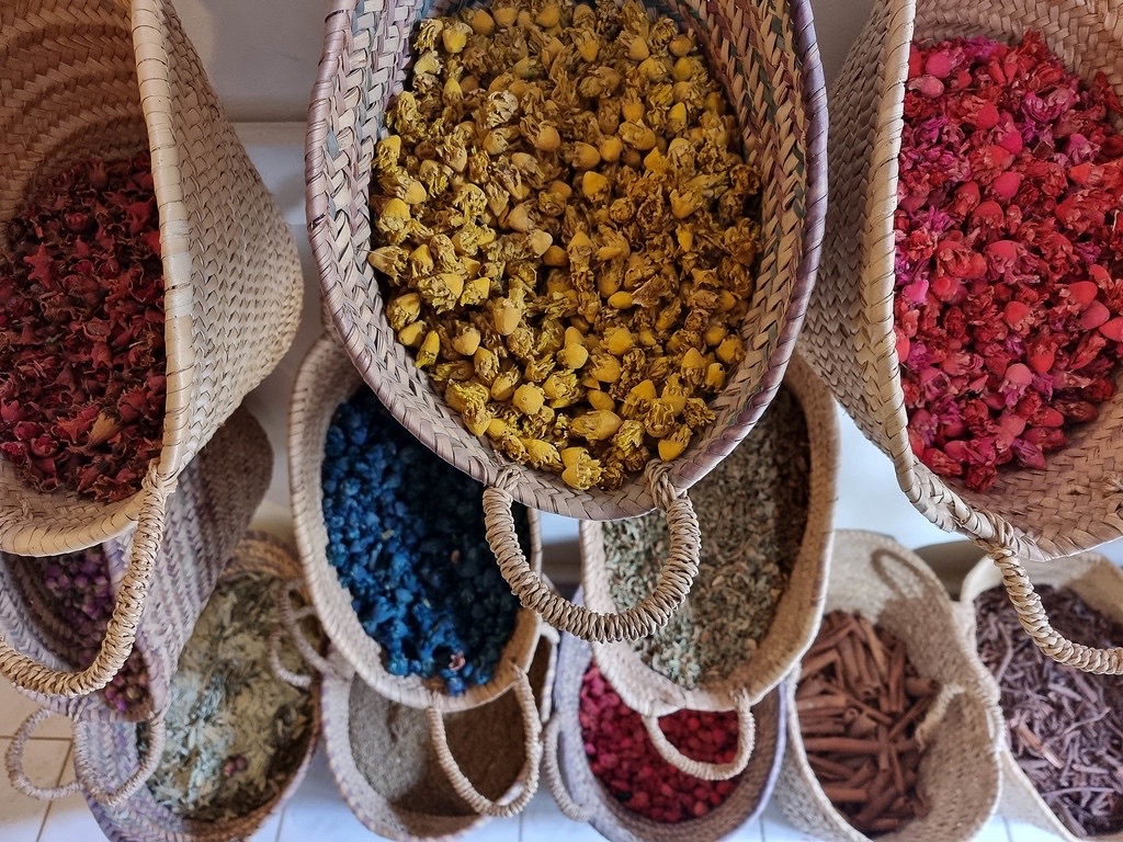 Gewürze mit SeeleRas el Hanout, Safran, Zimt, Minze, Arganöl und viele weitere Spezialitäten erzählen Geschichten aus Nadias Kindheit – von warmen Sommern, duftenden Feldern und traditionellen Rezepten, die über Generationen weitergegeben wurden.